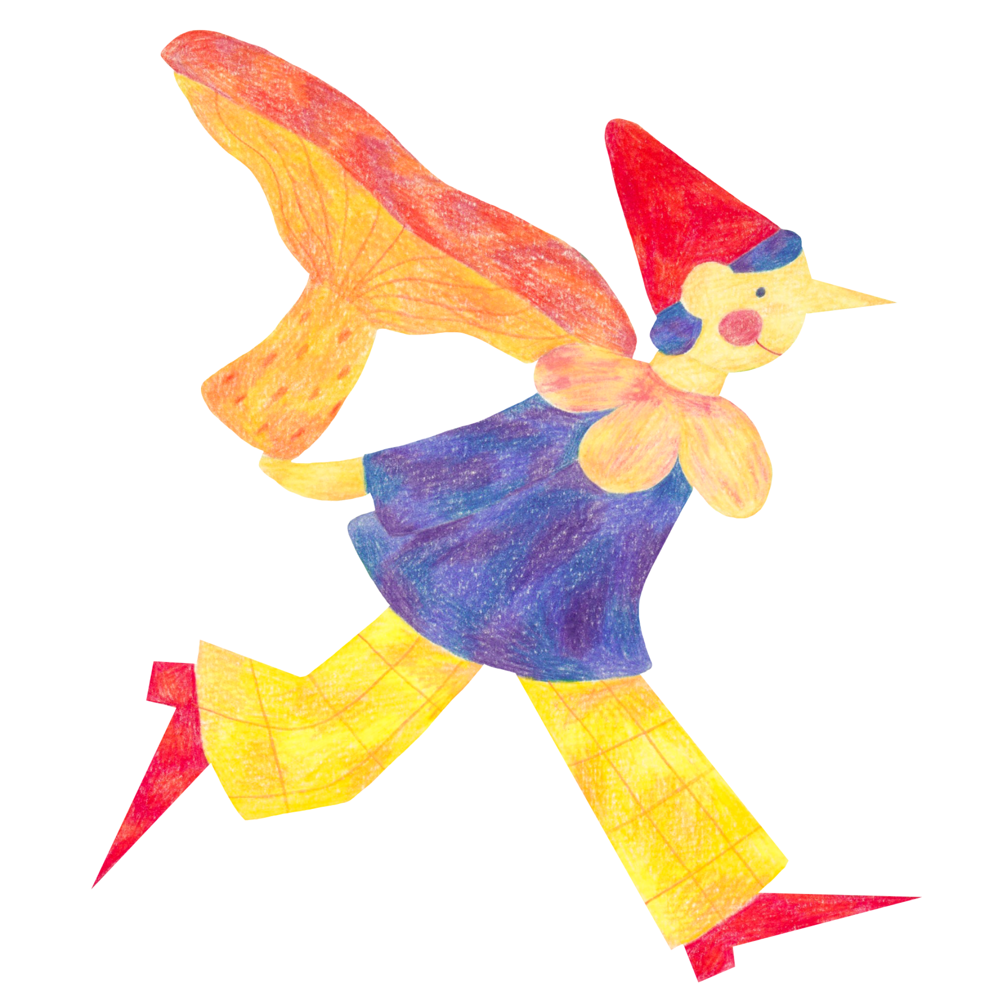 Me revoici ! Je t’écris à nouveau un petit mot car j’ai fait une nouvelle illustration que je trouve chouette, et j’avais bien envie de te la montrer ici ! J’ai ressorti mes crayons pour griffonner un coup. J’avais envie d’un dessin acidulé et coloré, qui apporte un peu de joie dans cette saison morose et pluvieuse. Ah la belle vie d’un chasseur de champignon !
